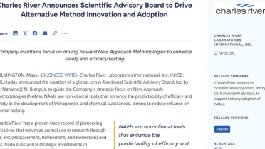 查尔斯河宣布成立科学顾问委员会,推进动物替代方法的创新和实践