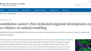 重磅!NIH 设立全美首个标准化类器官建模中心,以减少对动物建模的依赖